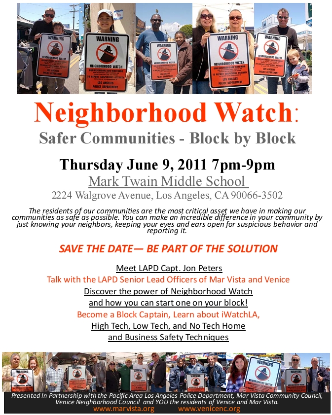 - Talk with the LAPD Senior Lead Officers of Mar Vista and Venice