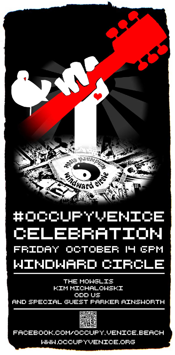 We met Eduardo the other night from the Occupy Venice movement and he let us know about a music event planned at the circle tonight… info below.