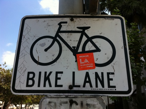 On Friday construction crews began removing one lane in each direction on Main St. in Venice to put in bike lanes in either direction between Windward Circle and Marine. Parking will not be impacted, but the road will be re-striped to add a bike lane traveling both ways, and a shared central turn lane in the center. Traffic congestion due to the project is only expected during rush hour. According to a local report, over 700 cyclists use the road during a one hour period.